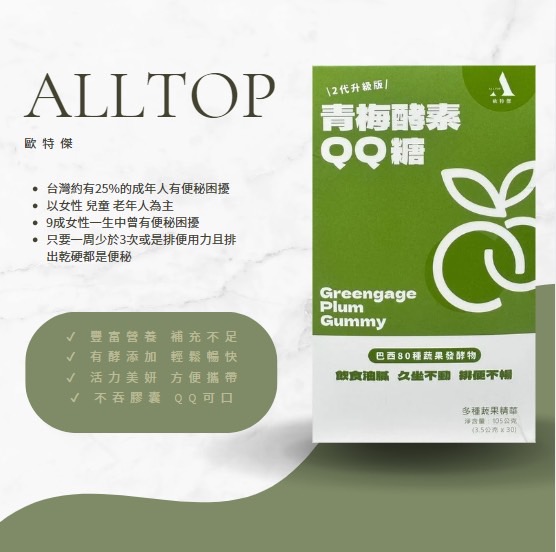 歐特傑ALL TOP!! 最新升級版!! 青梅酵素QQ糖(一盒30顆)(飯後吃)